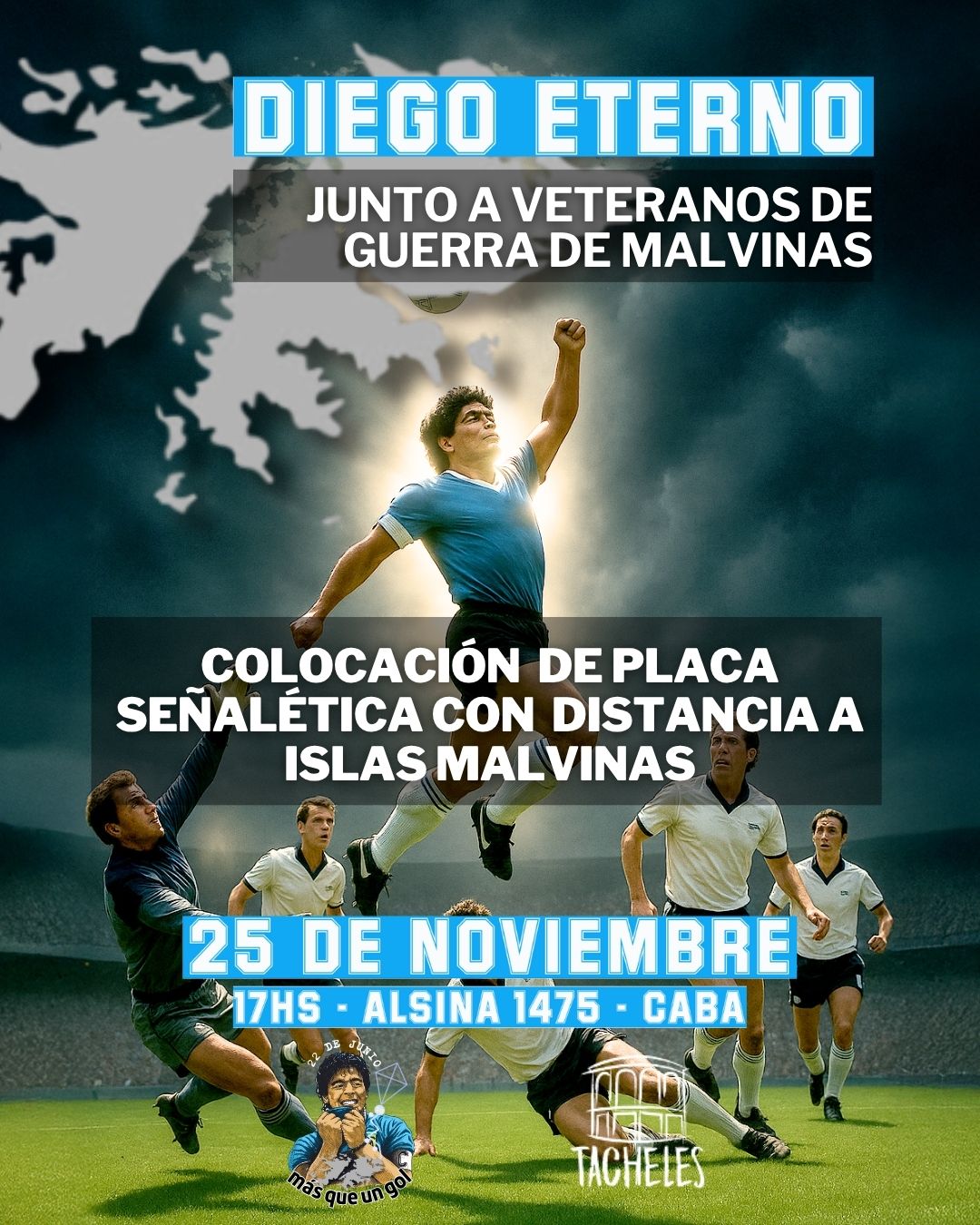 La Peña 22 de Junio realizará un acto en el Espacio Tacheles para recordar a Diego en un nuevo aniversario de su muerte, junto a excombatientes de Malvinas.